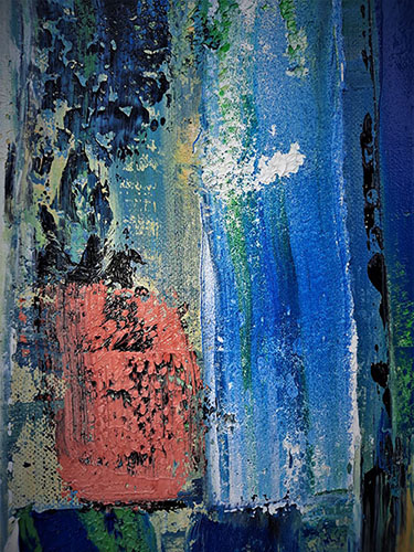 Passionnée par le thème "femmes dici et dailleurs" ; elle explore profondément ses uvres maniant le pinceau et le couteau en gestes convulsifs.